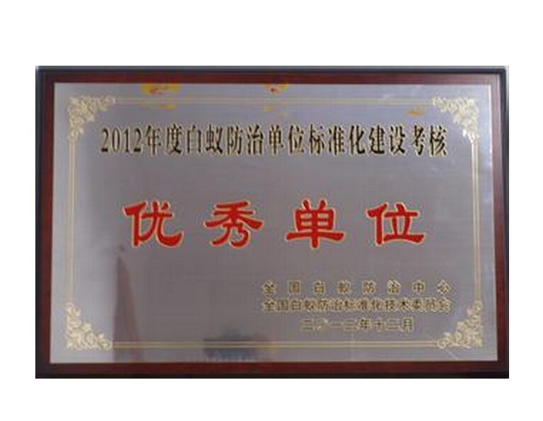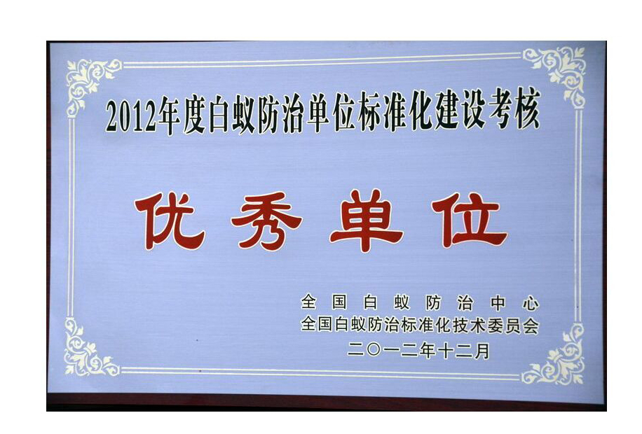 • 2012年度白蟻防治單位標準化建設(shè)考核優(yōu)秀單位