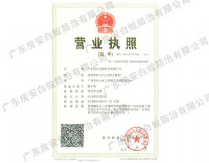 • 廣東房安白蟻防治有限公司營業(yè)執(zhí)照