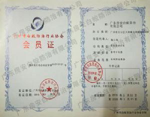 • 廣州市白蟻防治行業(yè)協(xié)會會員證